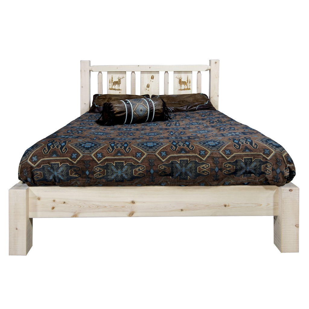 Homestead Collection King Platform Bed W/ Laser Engraved Elk Design, Ready To Finish