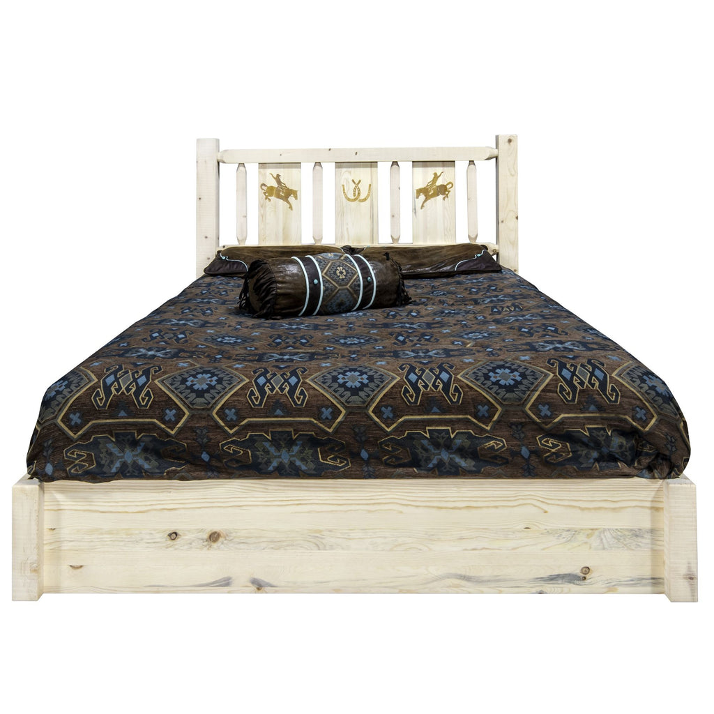 Homestead Collection Platform Bed W/ Storage, Twin W/ Laser Engraved Bronc Design, Ready To Finish