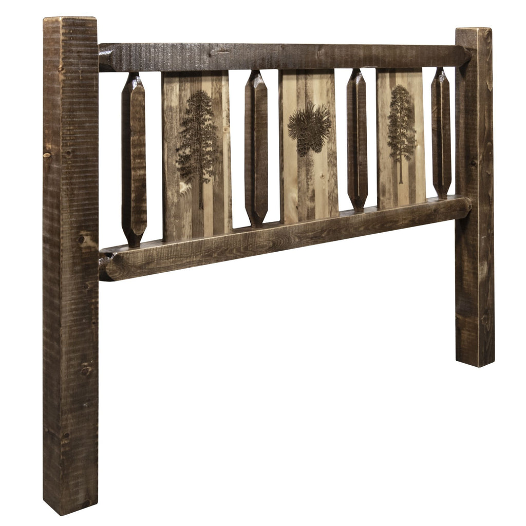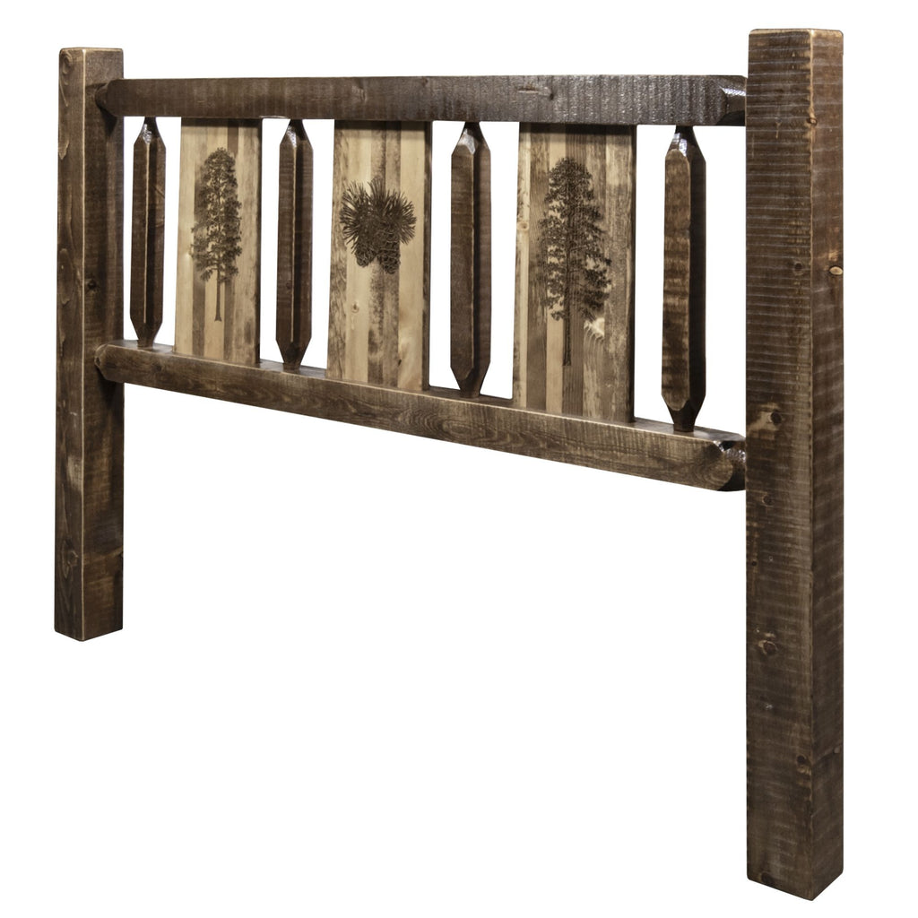 Homestead Collection Twin Headboard W/ Laser Engraved Pine Design, Stain & Clear Lacquer Finish