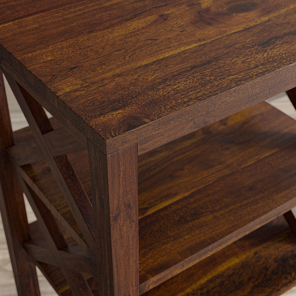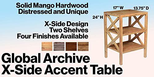 The Jofran Inc. Global Archive X-Side Accent Table complements various styles, including contemporary, rustic, and eclectic decor, thanks to its artistic design.