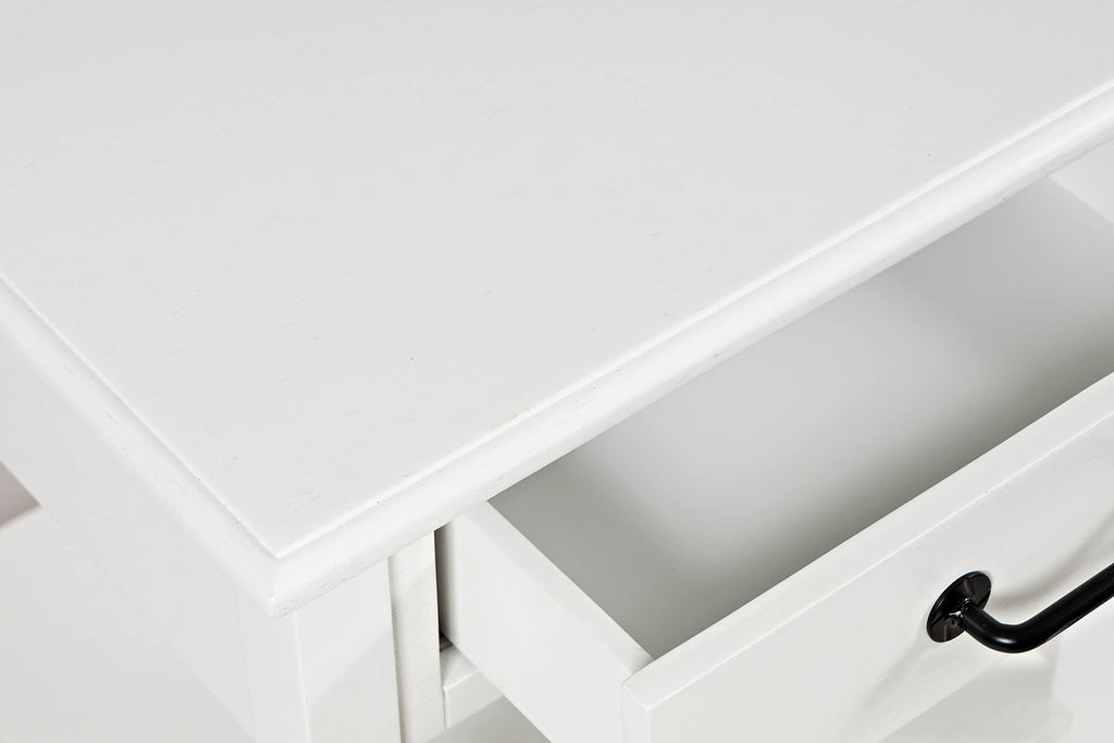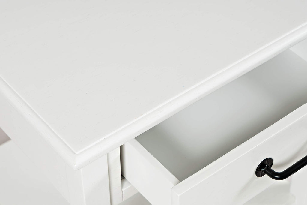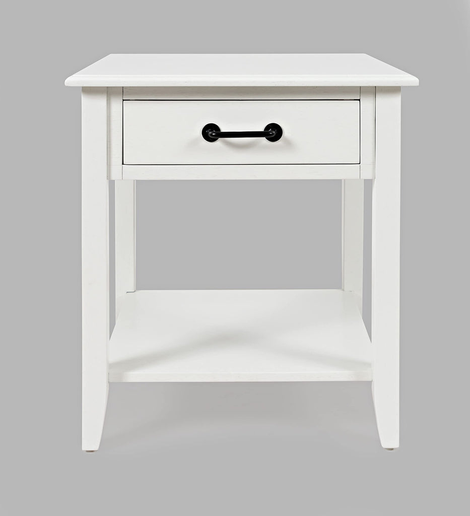 Farmhouse Furniture Made From Solid Hardwood Acacia With A Weathered Country White Finish Is The Signature Of Our North Fork End Table. Measuring 22'' Square, This Table Comes With Metal Alloy Hardware And A Beautiful Classic Look. Simple And Functional, This Collection Compliments A Wide Range Of Styles.