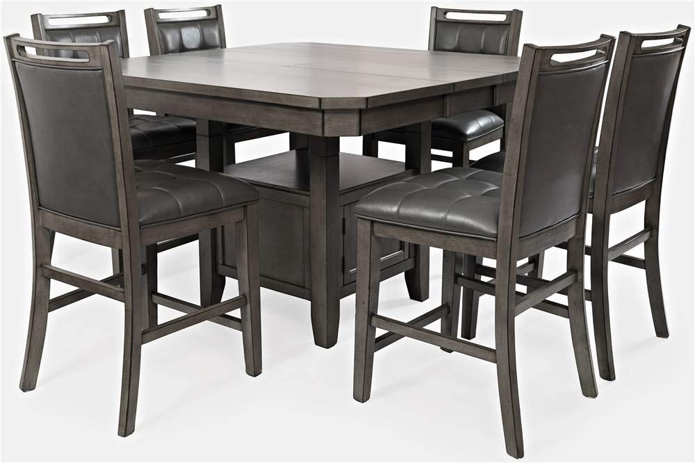 Featuring A Beautifully Smooth And Grey Wood Finish, Contoured Corners, And An Easy Access Storage Base, The Manchester Dining Collection Is Also Extremely Versitile. Able To Stand At 30 Or 36 With The Use Of Included Riser Blocks, Pair This Table With The Tufted Chairs Or Stools For A Complete, Polished Look.