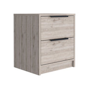 The nightstand has a modern and contemporary design with a sleek appearance.