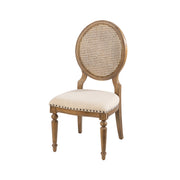 The Kippview dining chairs feature a natural and cream finish, but variations in wood grain and woven rattan may occur.