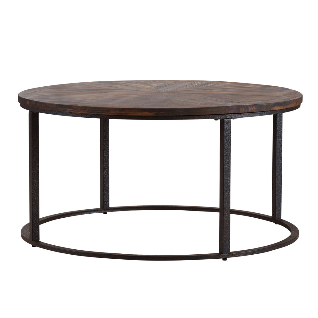 The SEI Furniture Landsmill coffee table complements a variety of decor styles, including industrial, rustic, and modern aesthetics.
