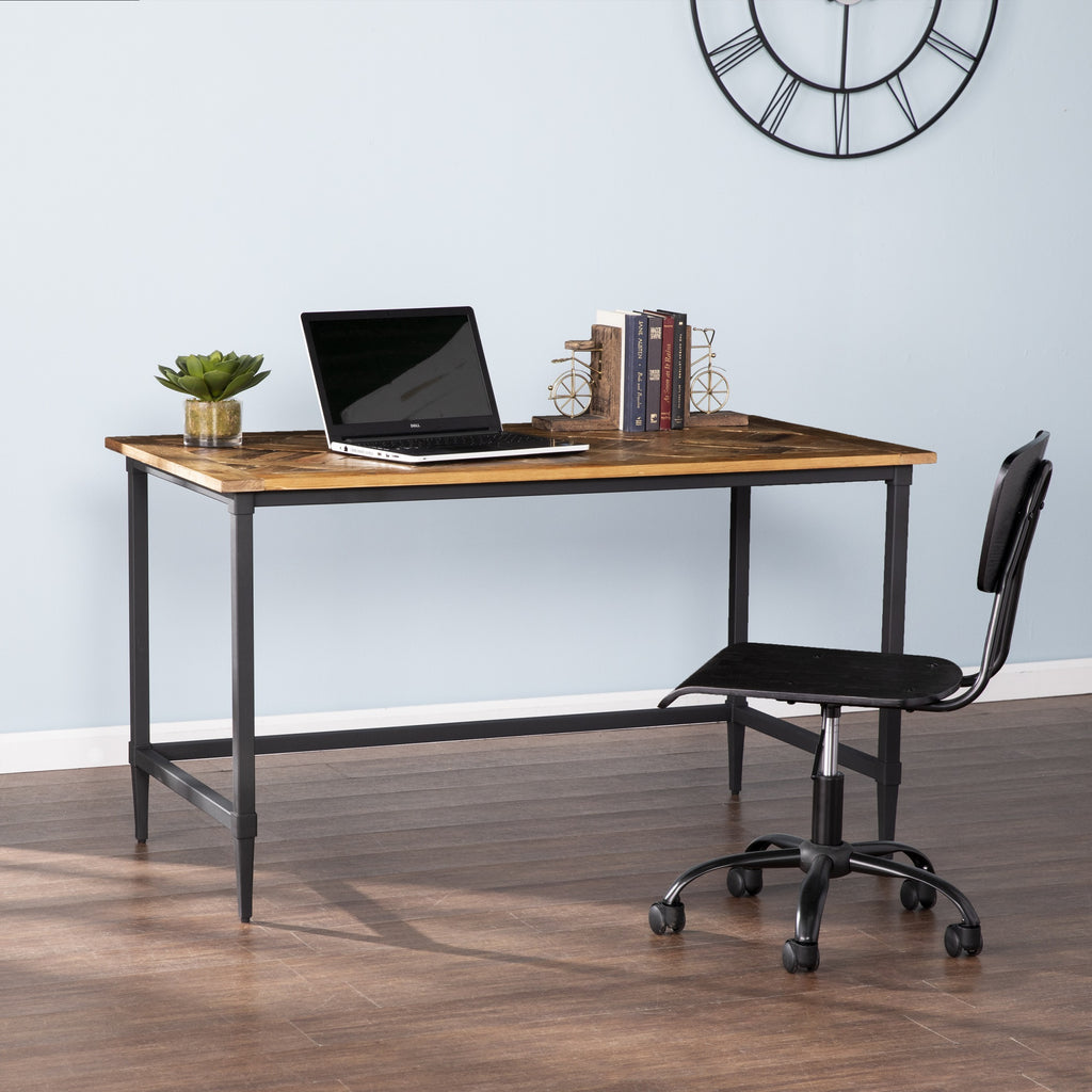 Add A Farmhouse Twist To Your Office Decor With This Reclaimed Wood Writing Desk. This Rustic Desk Offers A Spacious Desktop For Writing Or Laptop Work, Featuring Authentic Reclaimed Wood From Repurposed Shipping Pallets. With Sleek, Black Metal Legs And A Contemporary Design, This Modern Desk Adds A Fresh Look To Your Workspace Or Home Office.