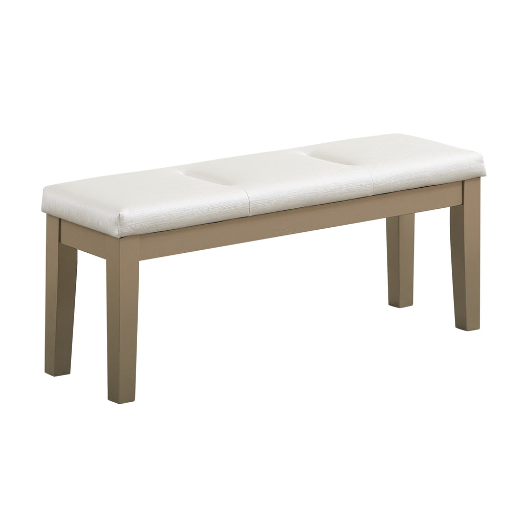 Legault Upholstered Modern Dining Bench, White Vinyl & Gold Wood