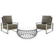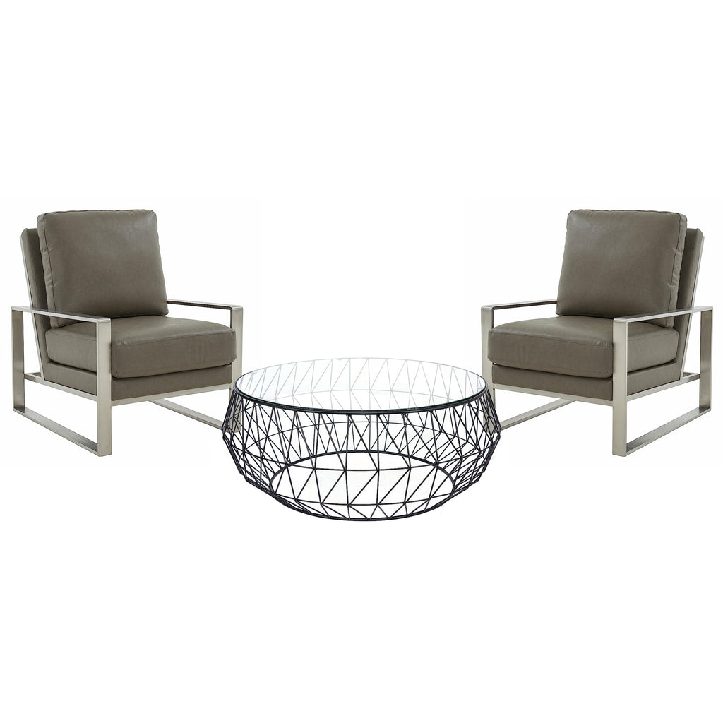 Leisuremod Jefferson Modern Leather Armchair With Silver Frame And Round Coffee Table With Glass Top And Metal Base
