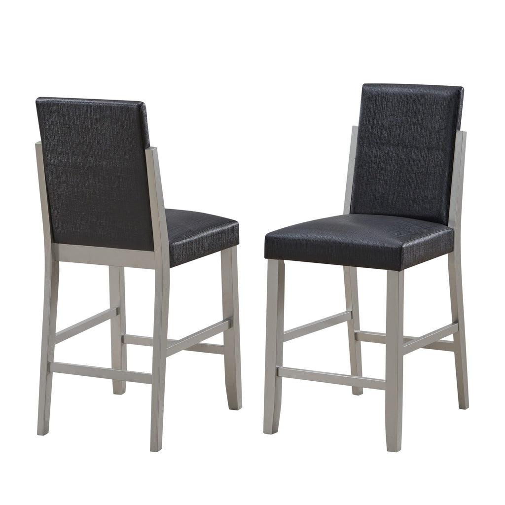 Luder Counter Height Bar Stools, Black Faux Leather & Champagne Wood Legs (Set Of 2). Encourage Your Entourage To Keep You Company With This Luder Counter Height Stool. Founded Atop Four Straight Solid Wood Legs With A Convenient Footrest In A Champagne Finish While The Square Seat And High Back Are Enveloped In Solid-Hued Faux Leather Upholstery With Foam Padding Cushions To Ensure Its Easy To Clean Yet Comfortable.