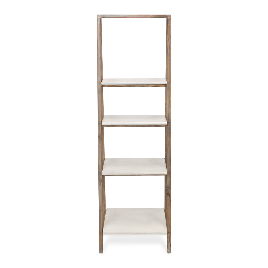 The shelf comes in a white and natural brown look with a tapered design, making it suitable for various decorative styles.