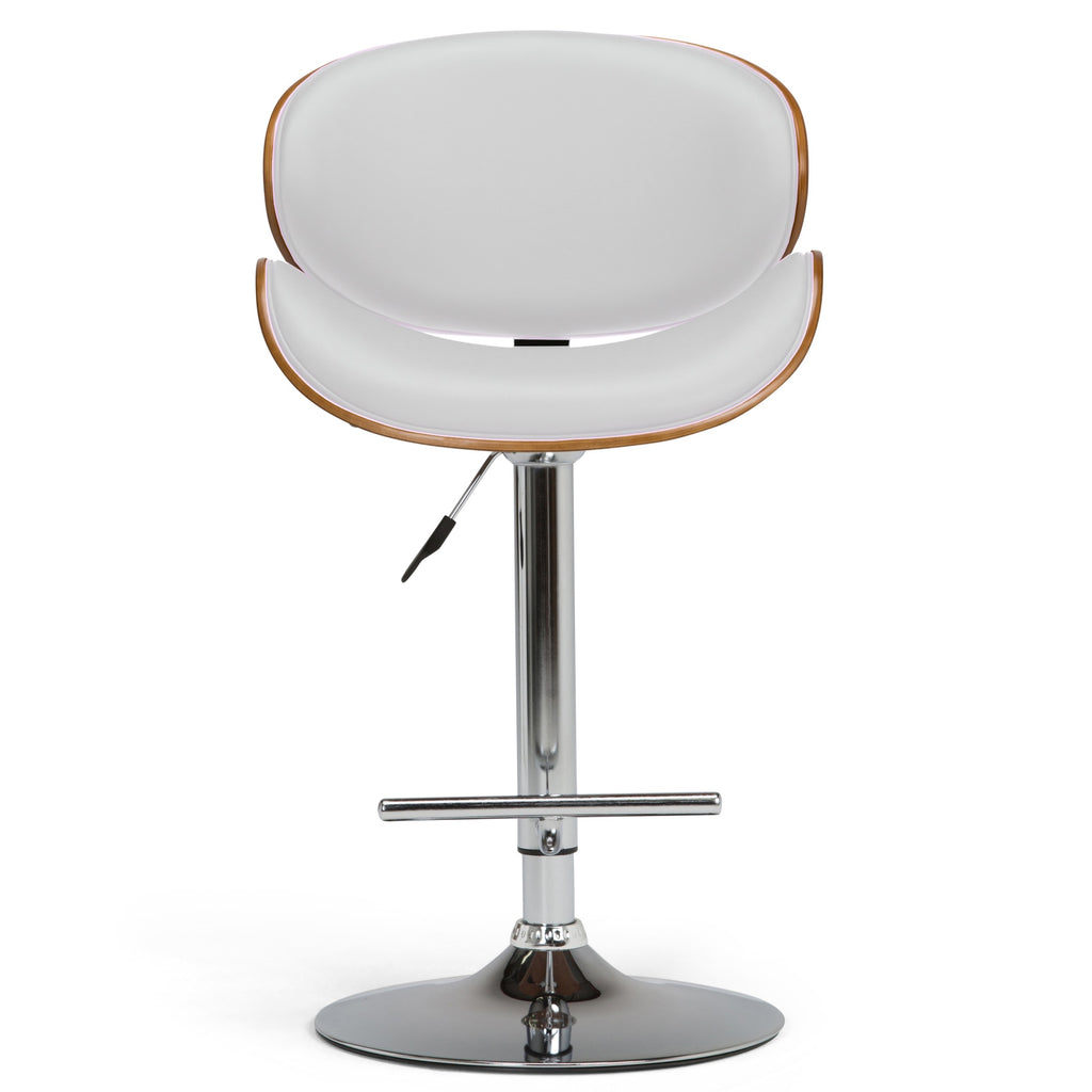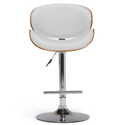 Marana Bentwood Adjustable Height Gas Lift Bar Stool In White Faux Leather