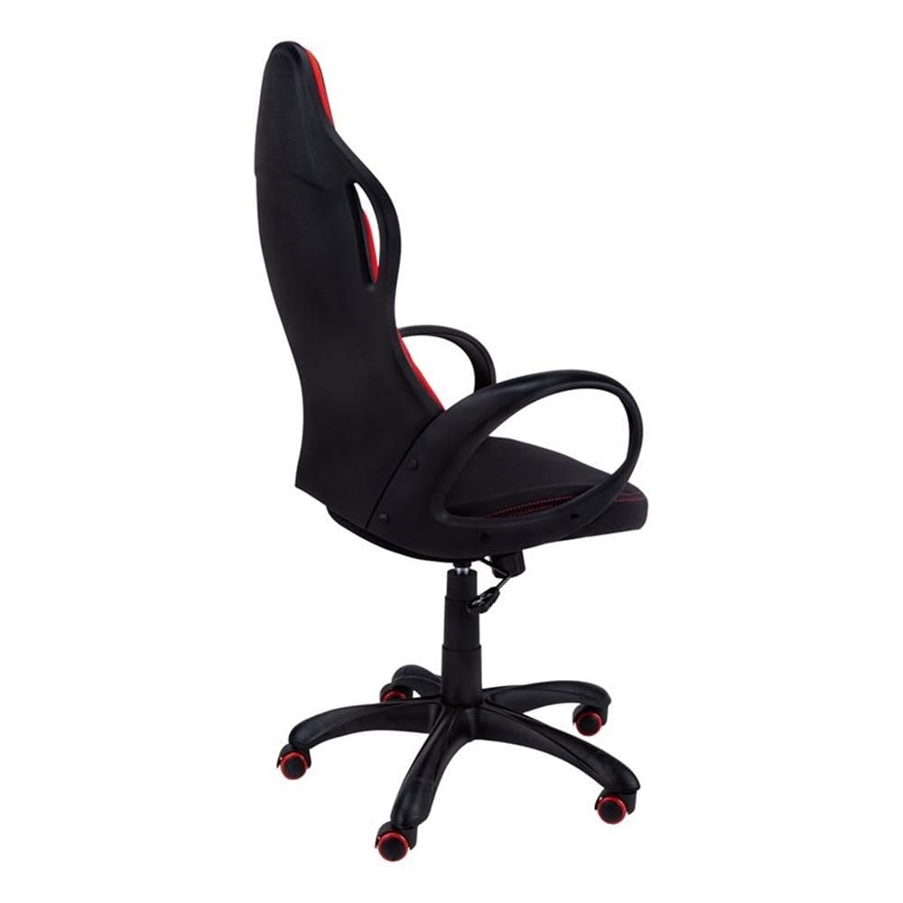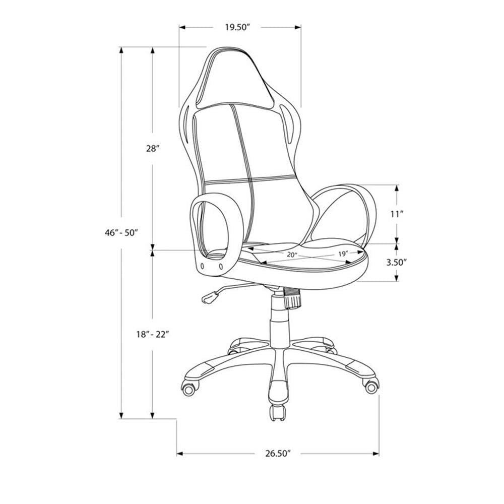 Shift Gears Between Work And Play In This Racing-Style Office Chair That Delivers Stylish Comfort Rounded, Fixed Armrests And Bright Red Accents On The Backrest, Seat, And Wheels Give This High-Back Task Chair With Black Fabric A Sporty Look Steering The Chair While You Remain Seated Is Easy Thanks To A Swivel Seat And Black 5-Star Base With Casters For A Soft Feel, Both The Wide, Extra-Tall Backrest With An Integrated Headrest And The 35-Inch-Thick, Wide, Extra-Deep Seat Are Generously Padded Raise Or Lower The Chair To Your Preference With The Adjustable Height Mechanism That Includes Tilt Control This Gaming Chair Conforms To Bifma Standards For Office Furniture So You Can Sit Comfortably For Long Periods As You Finish A Project For Work Or Complete The Next Level Of A New Video Game A Fun Alternative To Traditional Desk Chairs, It Is A Great Choice For A Game Room, Man Cave, Or Home Office Additional Dimensions: Overall Chair Height: From 46 Inches To 50 Inches Height From Floor To Seat: From 18 Inches To 22 Inches Seat Back: 195 Inches W X 28 Inches H Seat: 20 Inches D X 19 Inches W Weight: 31 Lbs