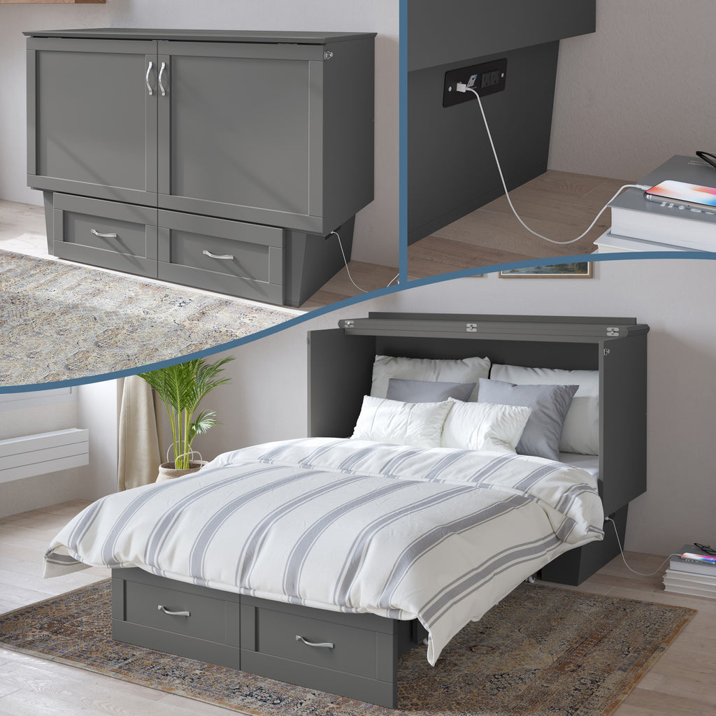 Welcome Your Guests In Style And Luxury With The Monroe Murphy Bed Chest. Elevate Your Hosting Game By Offering Your Visitors A Comfortable Night'S Rest On A Full-Sized Memory Foam Mattress, Cleverly Concealed Within This Timeless Cabinet. When The Festivities Are Over, Effortlessly Fold The Mattress Back Into The Chest, And The Monroe Transforms Into A Chic Room Accent, Seamlessly Blending With Your Decor. But That'S Not All! The Monroe Features A Built-In Charging Station, Ensuring Your Guests Stay Connected Throughout Their Stay. Plus, There'S A Spacious Storage Drawer To Help Keep Your Space Tidy And Organized. With The Monroe Murphy Bed Chest, You Can Be The Ultimate Host Without The Stress. Roll Out The Red Carpet And Provide Your Guests With A Truly Comfortable And Stylish Retreat. Experience Hosting Made Easy With The Monroe Murphy Bed Chest, Where Comfort, Convenience, And Elegance Come Together Effortlessly.
