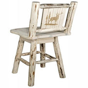 This Swivel Barstool Combines A Durable Swivel Mechanism With A Rustic Themed, Laser Engraved Elk Motif On The Back For An Awesome Combination Of Functionality And Stylish Design. The Artisans At Montana Woodworks Use Only Solid, American Grown Wood And The Durable, Millennia Old Mortise And Tenon Joinery System To Ensure You Will Own A Truly Heirloom Quality Item. Seat Height Is 30. Seat Width Is 18.5, Seat Depth Is 16. Legs, Back And Cross Supports Are Skip Peeled By Hand Using Old-Fashioned Draw Knives To Create A Unique, One Of A Kind Appearance. This Barstool Comes With An Ergonomic Wooden Seat. Fully Assembled. Capacity 350 Pounds. Comes Professionally Finished With Premium Grade, Semi-Gloss Clear Lacquer. All Montana Woodworks Products Come With A Hand Crafted In Montana U.S.A. Using Genuine Lodge Pole Pine!