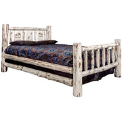 Featuring A Rustic Themed, Laser Engraved Three Panel Headboard With A Unique Moose Motif, This California King-Sized Spindle Style Log Bed Will Add A Sense Of Exceptional Style To Your Bedroom. Handcrafted In Montana Using Solid, American Grown Wood, Each Piece Is Skip Peeled By Hand Using Old-Fashioned Draw Knives For A Unique, One-Of-A-Kind Appearance. The Mortise And Tenon Joinery System Employed By Our Artisans Has Been Used For Millennia To Join Multiple Components Into A Single, Solid And Strong Assembly Thus Ensuring A Truly Heirloom Quality Piece That Will Last For Generations To Come. Two Log Side Rails Per Side Increase The Strength And Rigidity While Simultaneously Adding Value. Some Assembly Required. 550 Pound Capacity. Hand Crafted In Montana U.S.A. Using Genuine Lodge Pole Pine!