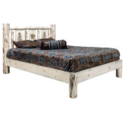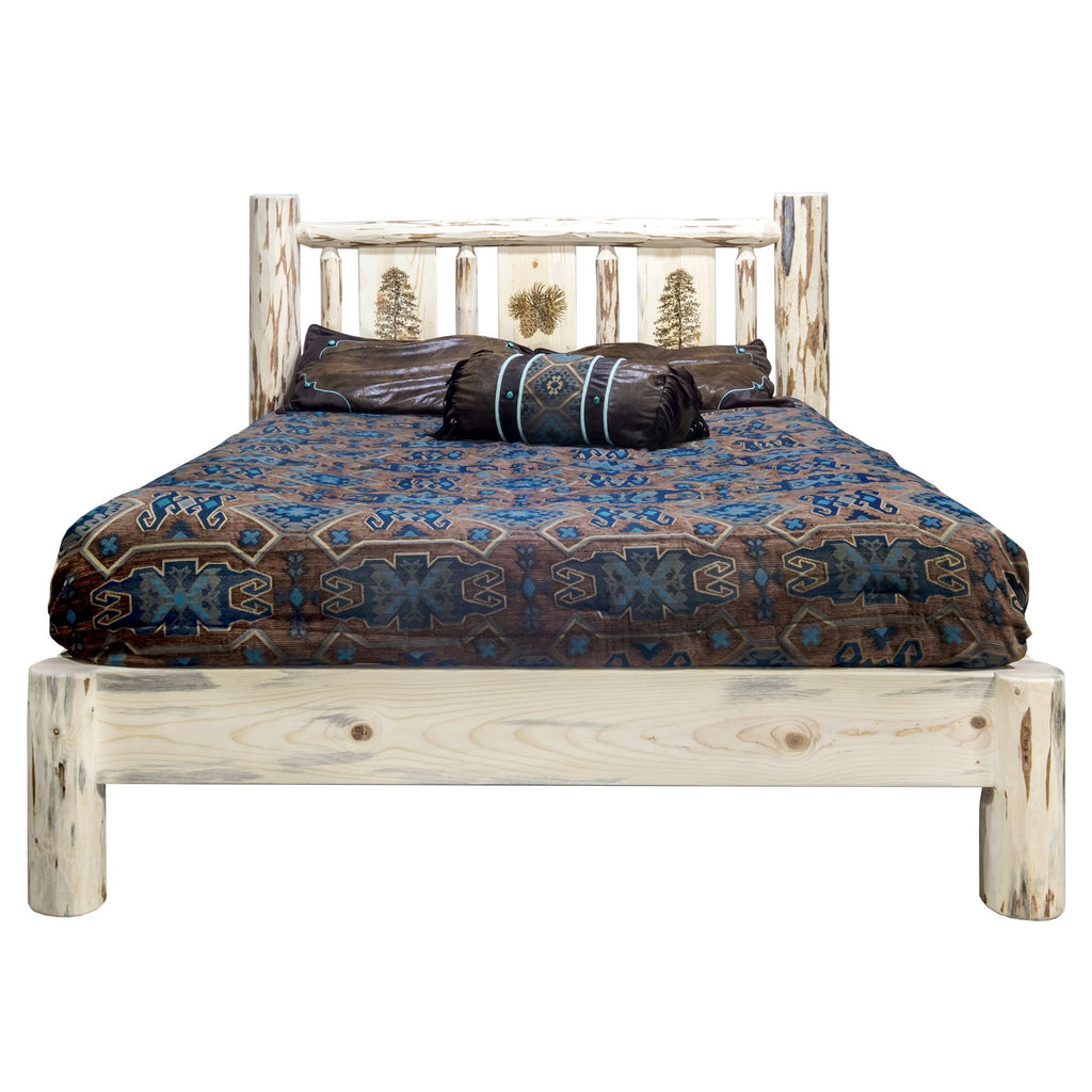 Montana Collection California King Platform Bed W/ Laser Engraved Pine Tree Design, Ready To Finish