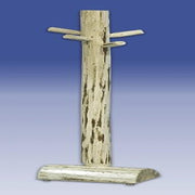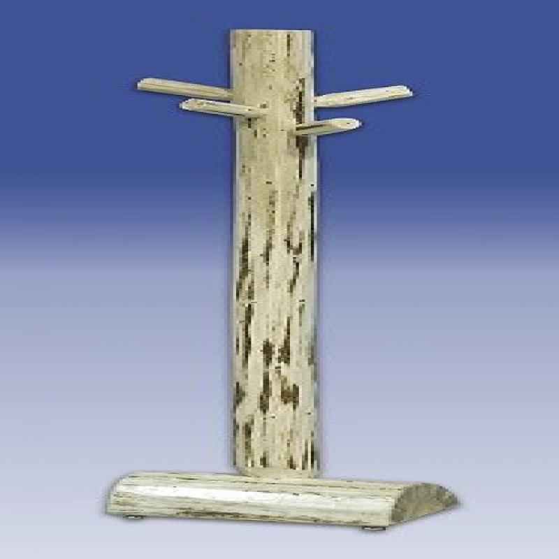 The coat tree is handcrafted from solid, American grown genuine lodge pole pine, ensuring durability and a unique appearance.