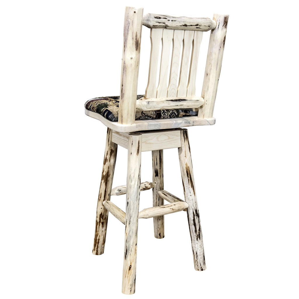 Montana Collection Counter Height Barstool W/ Back & Swivel - Woodland Upholstery, Clear Lacquer Finish