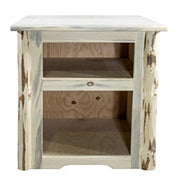 This end table is handcrafted in Montana using genuine lodge pole pine, ensuring durability and a unique appearance.