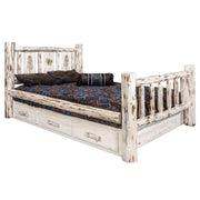 Montana Collection King Storage Bed W/ Laser Engrave Pine Design, Clear Lacquer Finish