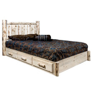 Montana Collection Platform Bed W/ Storage, California King W/ Laser Engraved Wolf Design, Ready To Finish