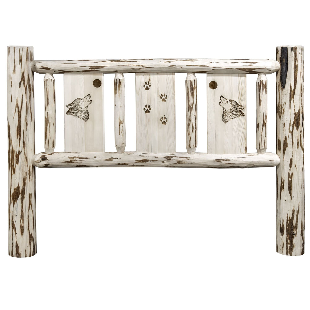 Montana Collection Queen Headboard W/ Laser Engraved Wolf Design, Clear Lacquer Finish