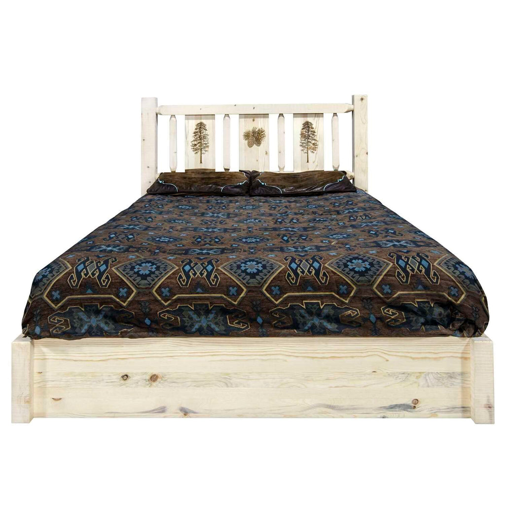 Handcrafted By The Artisans Of Montana, The Homestead Collection Of Fine Rustic Furniture Features Timbers And Trim Pieces Similar Reminiscent Of A Timber Framed Home On The American Frontier. Made In Montana, Usa With Solid, American Grown Wood.Featuresrustic Themed, Laser Engraved Pine Tree Motifhand Crafted In Montana Usa Solid, Us Grown Genuine Lodge Pole Pine Woodtimbers And Trim Pieces Are Sawn Square For Rustic Timber Frame And Barn Wood Design Appearanceeach Piece Signed By The Artisan Who Makes Itno Box Spring Requiredheirloom Qualitycollection: Homestead Collectionmaterial: Solid And Pine Woodcolor: Lacqueredassembly Required: Yesproduct Dimension: 91D X 80W X 47H Made In Usa