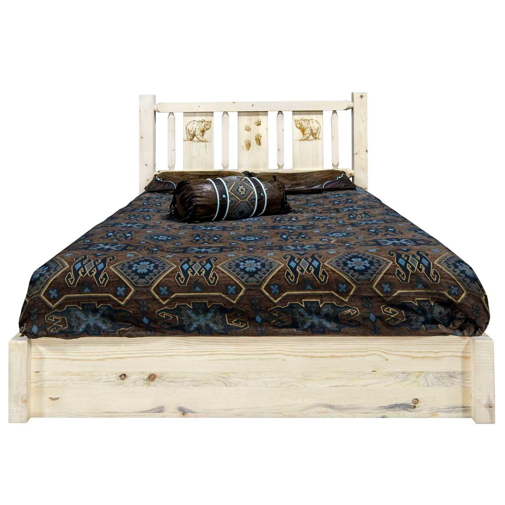 Montana Woodworks Bear Design Laser Engraved Platform Bed In Clear Lacquer Finish (Full: 83 In. L X 60 In. W X 47 In. H (258 Lbs