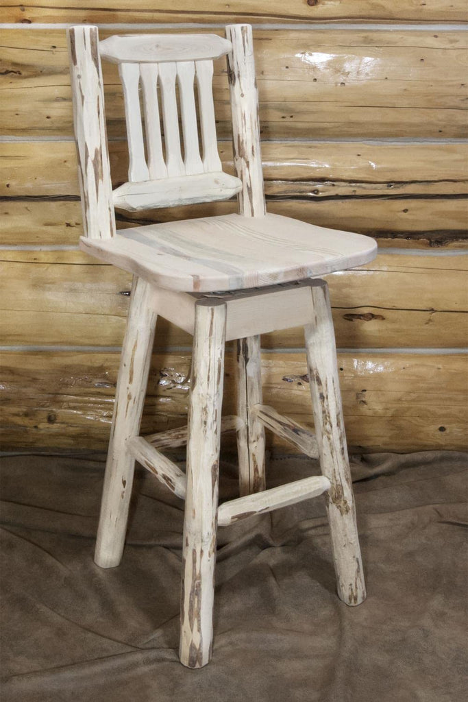 Montana Woodworks Collection Barstool With Back And Swivel, Ergonomic Wooden Seat, Ready To Finish