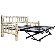 The Montana Woodworks Day Bed is designed to accommodate standard twin mattresses, with the dimensions typically matching those of a twin bed. The trundle bed underneath is also designed for a twin mattress.