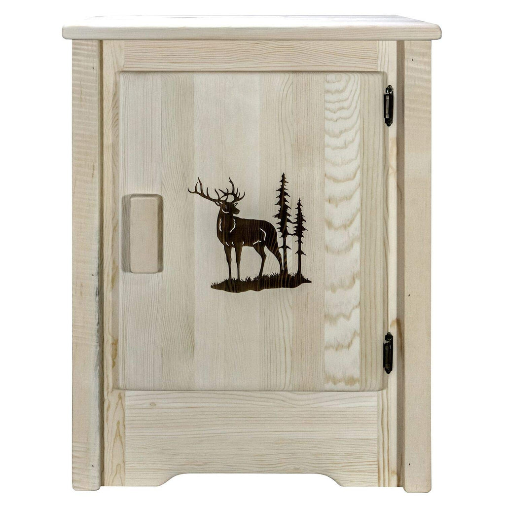 Montana Woodworks Homestead Collection Accent Cabinet With Laser Engraved Elk Design, Right Hinged, Clear Lacquer Finish