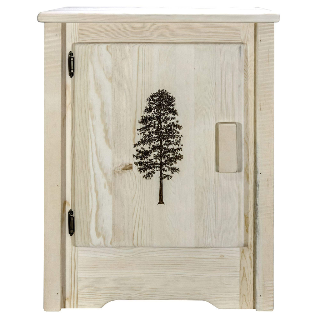 This Multipurpose Accent Cabinet From Montana Woodworks Features Two Fully Adjustable Shelves In A Storage Area The Measures 23 Inches High, 19 Inches Wide And 10 Inches Deep. Shelves Adjust In 1. 25 Inch Increments And Are Held In Place By Brass Hardware. This Item Features A Left Hinged, Raised Panel Door Featuring A Rustic Themed, Laser Engraved Pine Design. Handcrafted In The Mountains Of Montana Using Solid, American Grown Wood, The Artisans Rough Saw All The Timbers And Accessory Trim Pieces For A Look Uniquely Reminiscent Of The Timber-Framed Homes Once Found On The American Frontier. Comes Fully Assembled. This Item Comes With A Factory Applied, Premium Grade Semi-Gloss Clear Lacquer Finish. All Montana Woodworks Products Come With A 20-Year Limited Included At No Additional Charge. Hand Crafted In Montana U. S. A. Using Genuine Lodge Pole Pine!
