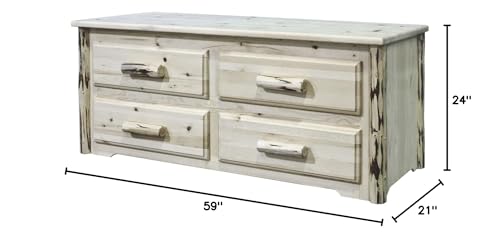 The Four Drawer Sitting Chest From The Montana Collection Features The Same Storage Space As A Four Drawer Chest Of Drawers While Also Providing A Sleek, Low Profile Look. Used At The Foot Of The Bed It'S An Excellent Place To Sit While Taking Off Shoes, Socks, Etc. Hand Crafted In Montana Using Genuine Lodge Pole Pine. The Spacious Drawers Feature Epoxy Coated Steel Glides. Trim And Drawer Pulls Are Skip Peeled By Hand For A Unique, One Of A Kind Appearance. This Item Is Professionally Finished With Premium Grade Clear Lacquer. Comes Fully Assembled. 20-Year Limited Manufacturer'S Warranty Included.