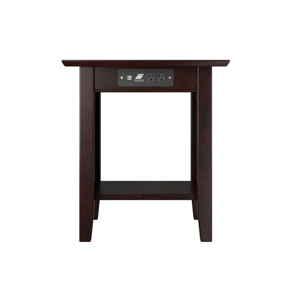 Yes, the AFI Nantucket End Table features two high-efficiency USB charging ports and two 110-volt AC power outlets, providing convenient charging for your devices.