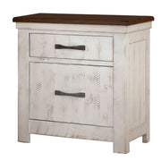The nightstand features a plank design with a distressed finish, making it versatile for rustic, farmhouse, or modern decor styles.