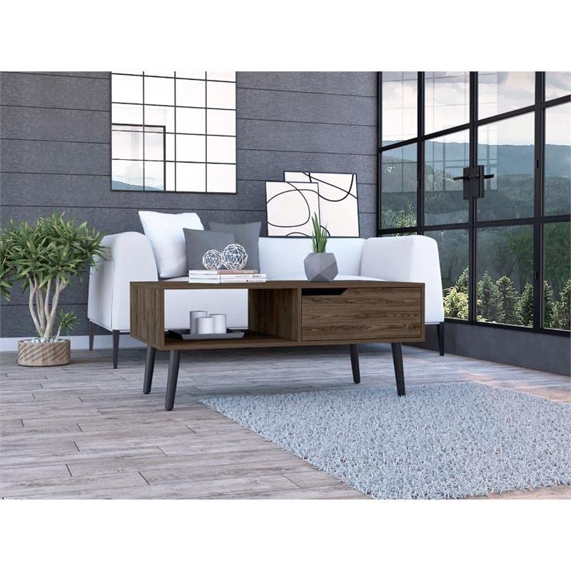 Part Of The New Exclusive Collection, The Tuhome Oslo Coffee Table Is An Incredible Option For Any Space. This Table Is Ideal For The Contemporary Touch You Want In Your Living Room, With A Perfect Size (39,61''W X 23,62''D X 17,32''H). With Its Ample 46.11-Inch Superior Top, The Oslo Coffee Table Is Ideal For Anyone Who Likes To Keep Their Living Space Neat And Organized. The Table Features A Spacious Surface That'S Perfect For Setting Down Cups Of Coffee, Plates Of Cookies, Or Any Other Sundries You Might Have Lying Around.With One Open Shelf (18,8''W X 7,4''H) And Ample Drawer (18,7''W X 7,3''H) This Piece Is Designed With Dark Walnut Manufactured Wood