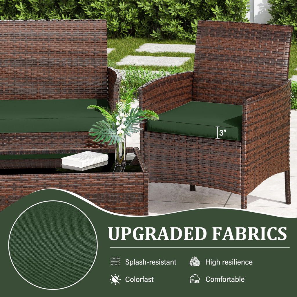 4-piece terrace guest furniture set with cushion cover ??? Feature ???anti-fading: Whether it's the sun or other inclement weather, our 4-piece bushings are always more durable and UV resistant than regular slipcovers?Thickness: If you look at the picture carefully, you can find that the Pakunoda cloth cover even across the screen, is thick and safe, it is not as thin as other cloth covers, and it is safe and breathable?Non-slip: Although it is not 100% waterproof, it is very non-slip and anti-splash?? Product size ??1 Pack - double sofa cushion cover (36Lx18Wx2H inch)2 Pack - Single cushion cover (18Lx18Wx2H inch)?? Note * Not a flat size, but a size that can accommodate the mat?? Some points ???The product only includes sofa covers, not cushions?Due to differences in display and light, colors may be slightly inaccurate. Please refer to the actual product for details, Image for reference only.The dimensions are marked to accommodate the padding and differ slightly from the flat dimensions of the covers. (The tightened edges cannot be used as a reference for holding size, so we have marked the size that will hold the insert for your easy reference)?Our pillowcases are versatile and suitable for any type of cushion (cushion size and cloth cover)?Pakunoda yarn-dyed polyester fabric with light resistance for over 1000 hours in sunlight.Other pillowcases fade quickly in the sun, and this specially designed technology makes our pillowcases stain and dust resistant. Tired of the stains left by hard-to-clean liquids in all sorts of unexpected situations?Use it and restore it with just a wipe or simple clean!