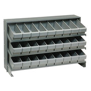 The shelving unit features a high-density sloped shelving system, designed for convenient access and efficient organization of stored items.
