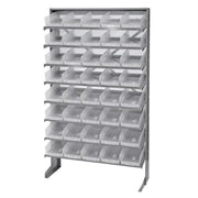 The Sloped Bins Rack includes 40 clear bins that are 4 inches in height.