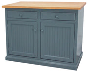 The Dark Blue finish and oak top of the kitchen island can complement various decor styles, including modern, farmhouse, and traditional aesthetics.