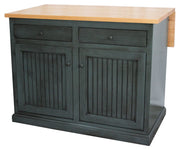 Poplar Kitchen Island With Flip-Up Top In European Dark Blue With Oak Top