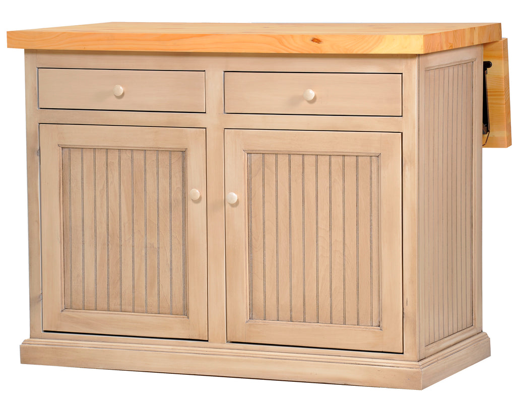 The Poplar Kitchen Island has a flip-up top that adds 12 inches to its depth, providing ample workspace.