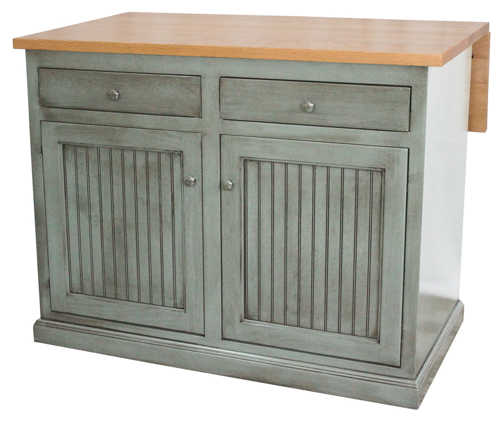 Yes, the kitchen island features an oak top that is known for its durability and resistance to wear, making it suitable for daily use in the kitchen.