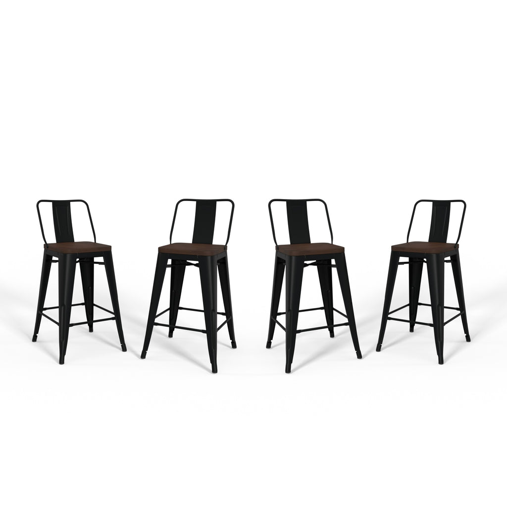 Rayne 24 Inch Metal / Wood Counter Height Stool (Set Of 4) In Black