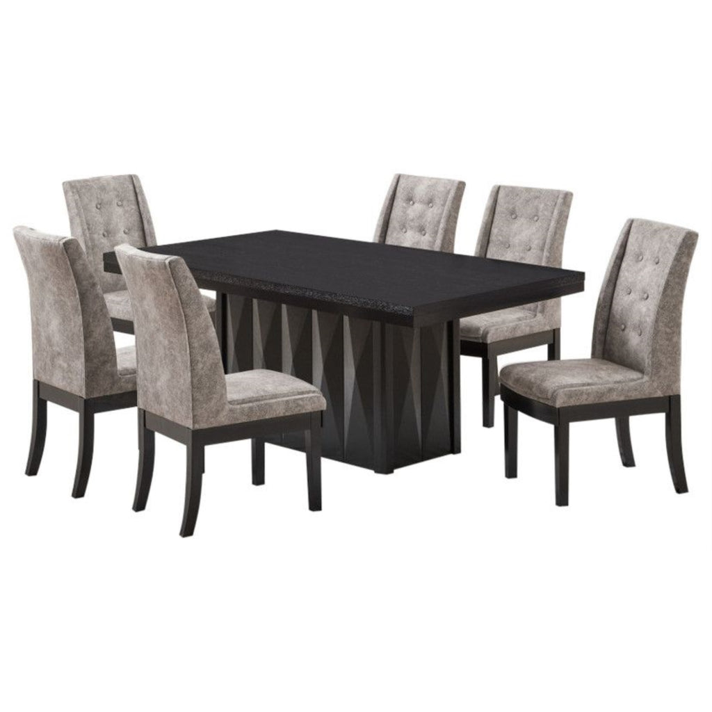 Riley 7 Piece Modern Pedestal Dining Set, Cappuccino Wood & Gray Fabric (Table & 6 Upholstered Parsons Chairs)