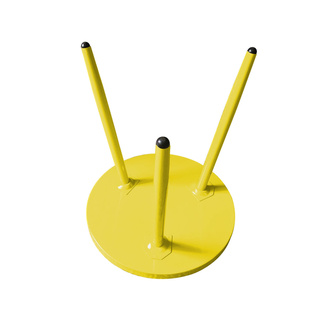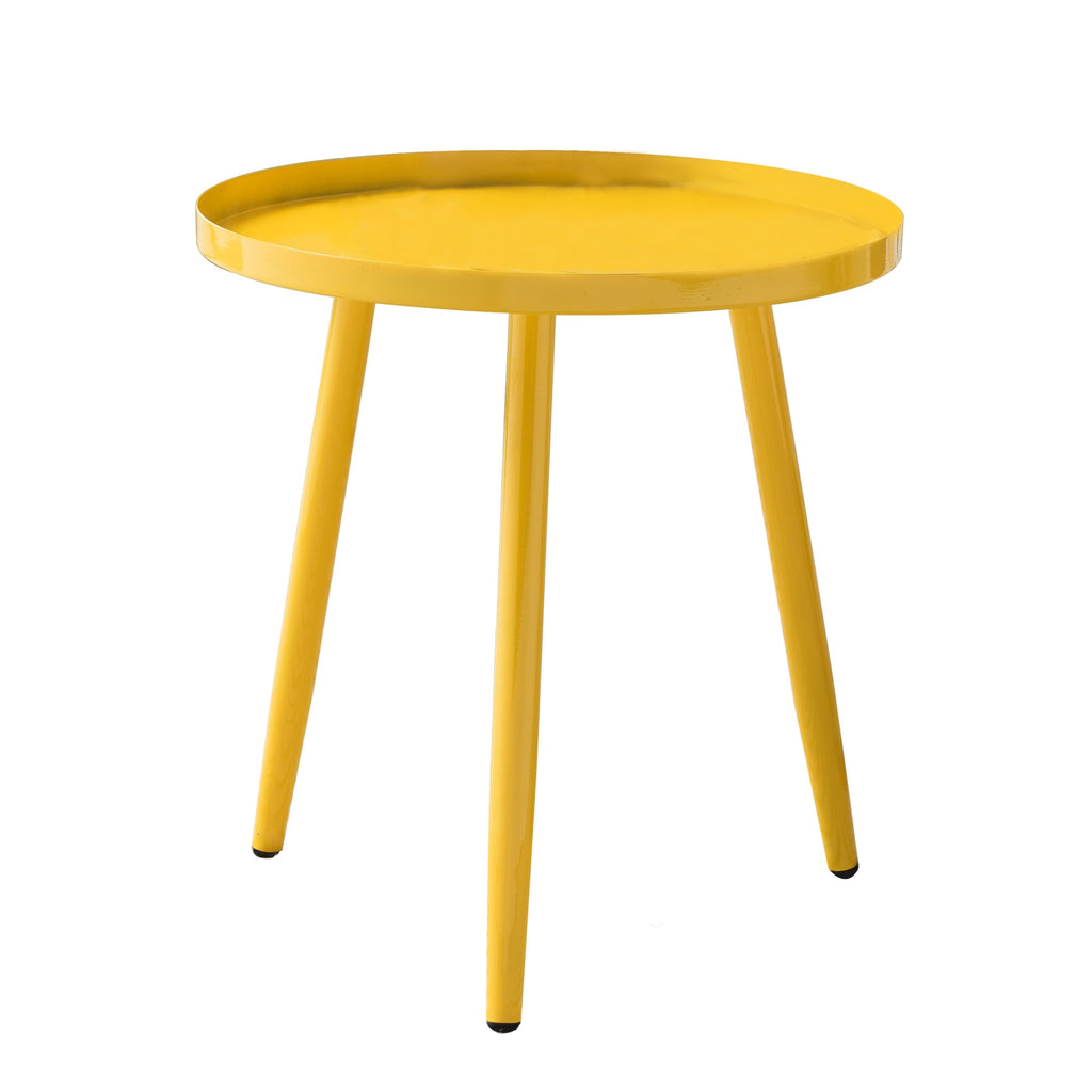 The table is finished in a vibrant yellow color.