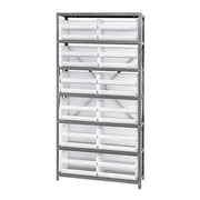 Yes, the shelving unit comes with 24 Giant Stack Bins that feature open hopper fronts for easy access to stored items.