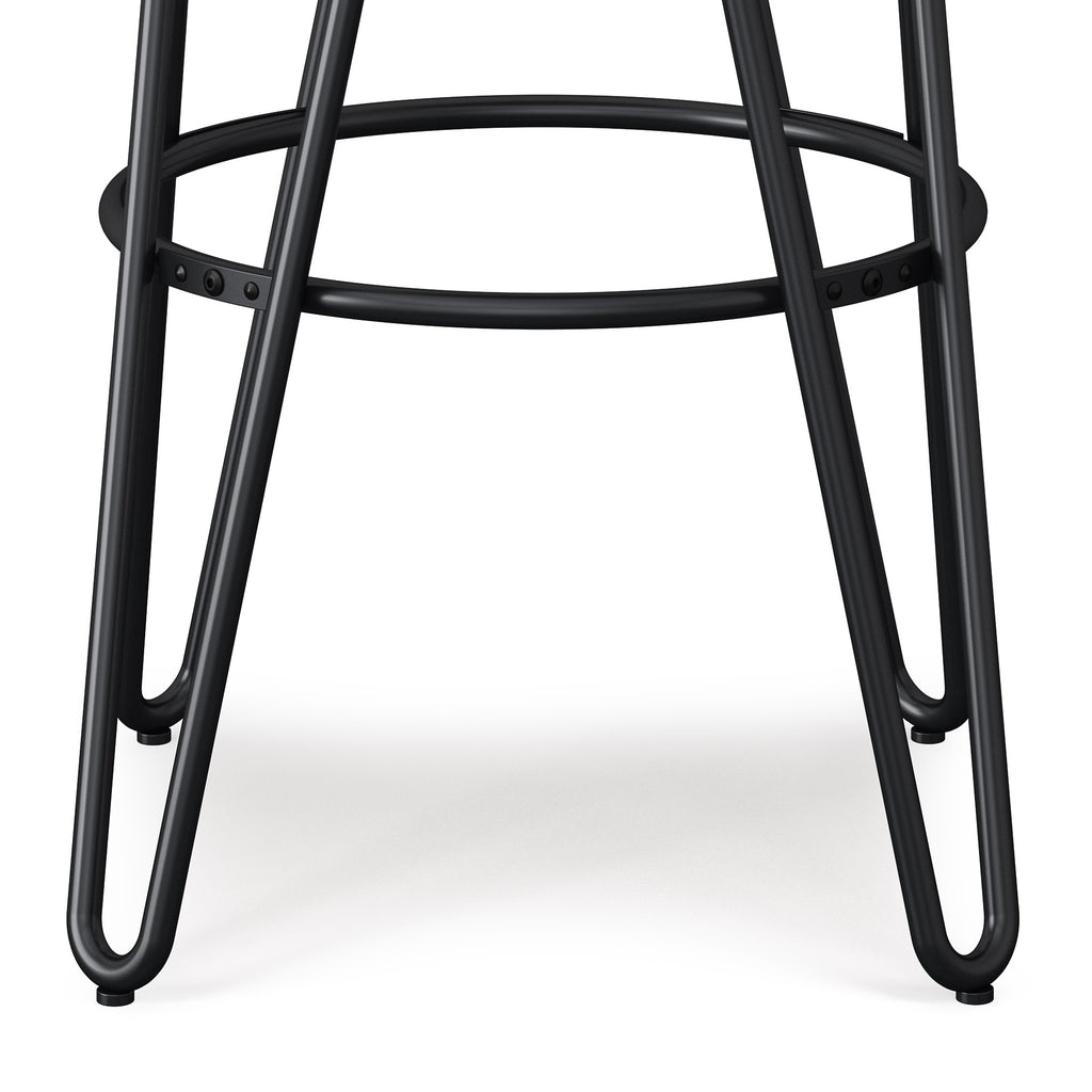 The SIMPLIHOME Simeon Bar Stool features an industrial style that complements minimalist and modern decor, making it a versatile addition to various spaces.