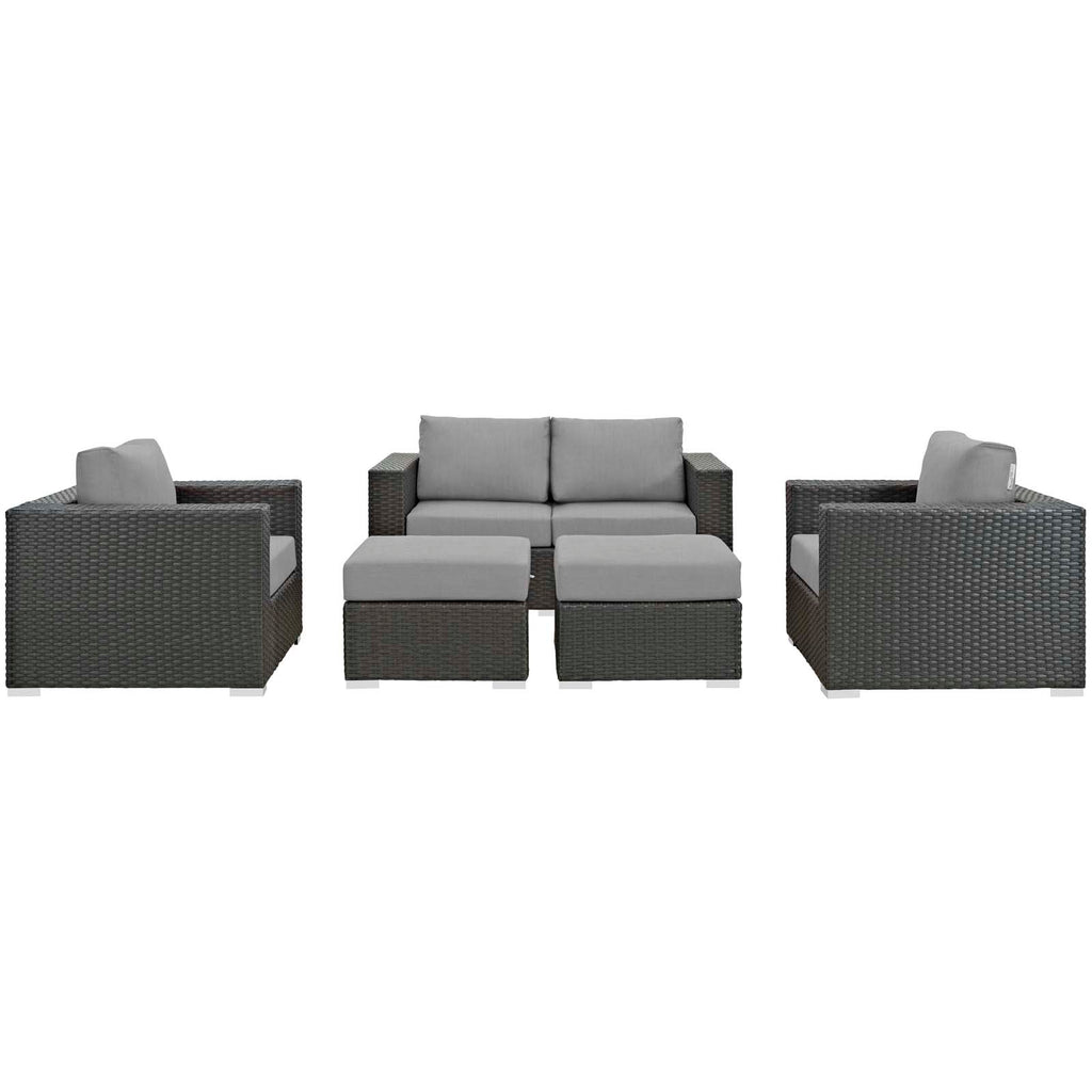 Sojourn 5 Piece Outdoor Patio Sunbrella Sectional Set - Canvas Gray
