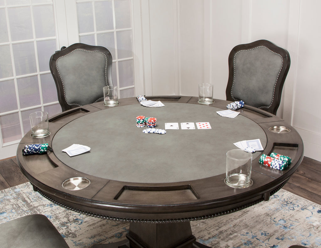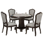 Ever Wonder What To Do At Your Next Family Gathering Or Dinner Party? The Vegas 2 In 1 Convertible Dining Table Set Is Your Answer! This Is A Party In A Box, Your Friends And Family Will Enjoy Dining At The Spacious Round Table And Then Flip The Top For Your Hidden Surprise, A Full-Service Poker And Game Table Lies Underneath. No Worries About Having Extra Room, The Table Will Update Your Dining Room, Kitchen Or Bar Room Within Minutes, Transitioning Your Space Into A Luxurious Gaming Entertainment Room. Sturdy Casters Provide Mobility To The Comfortably Cushioned Chairs Attractively Adorned With Nailheads And Can Roll To Your Desk Or Use As Extra Living Room Seating When Guests Arrive. This Well-Built Dining And Game Room Set Will Provide Generations Of Use And A Fill Every Day With A Happy Hour.